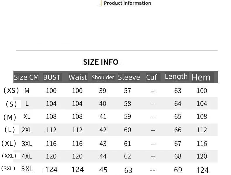 size_info: {"sizeInfoList":[{"length":{"cm":"100","inch":"39.37"},"size":"M 40-50KG","vid":-1},{"length":{"cm":"104","inch":"40.94"},"size":"L 50-55KG","vid":-2},{"length":{"cm":"108","inch":"42.52"},"size":"XL 55-60KG","vid":-3},{"length":{"cm":"112","inch":"44.09"},"size":"XXL 60-65KG","vid":-4},{"length":{"cm":"116","inch":"45.67"},"size":"XXXL 65-70KG","vid":-5},{"length":{"cm":"124","inch":"48.82"},"size":"5XL 80-85KG","vid":-6},{"length":{"cm":"120","inch":"47.24"},"size":"4XL 70-80KG","vid":-7}]}